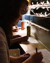 Battle of the Bands judges fill out score sheets for Dollarbird in the Underground Coffeehouse at Western Washington University on Feb. 19, 2025. Sylvia London, Flynn Rodriguez and Gabe Sodl were the judges that night. // Photo by Natalie Jones