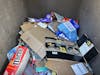 The dumpster outside Ridgeway Sigma on Feb. 12, 2025, in Bellingham, Wash. The dumpster is for trash, not recycling, yet several Amazon boxes are visible. // Photo by Hope Rasa
