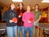 Ping Pong Club officers line up for a photo with their paddles on January 30, 2025, in Bellingham, Wash. In order from left to right; Ellie Krulish, Max Warborg, Otto Loidhamer, and James Taylor. // Photo by Adeline Roesler-Begalke
