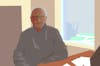 Abstract illustration of Sabah Randhawa at his office in Old Main on Western Washington University’s campus in Bellingham, Wash. Despite worries from students and staff, he’s confident that WWU will remain a prominent university for the foreseeable future. // Illustration by Liam Britt