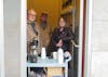 Volunteers Harold Mills, Mike Tobin, and Sheila Mills pose in the coffee closet in Bellingham, Wash., on Feb. 4, 2026. It was a slower day than usual, since the weather was a little warmer, but they still saw dozens of people. // Photo by Noelle Reger