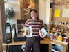 Pel’meni’s cashier and vinyl station is pictured on Sep. 3, 2024, in Bellingham, Wash. Customers can check out the store’s music collection and maybe even throw on a record. // Photo by Madi Tessem