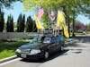 A car with a variety of flags and a sign reading “Faith Over Fear.†The car belongs to Michael Thompson, who came to support Bellingham Police on Saturday. // Photo by Nicola Wasmuth