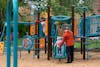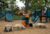 The playground at Bloedel Donovan Park on Oct. 23, 2025. The playground is made up of two main structures with slides, a swing set, a climbable block element and more. // Photo by Sophia Jellinghaus